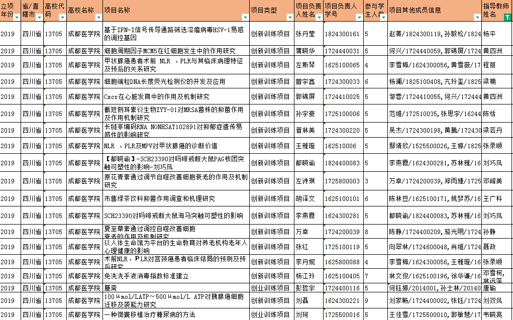 2019年度中心教师指导国家级、省级大学生创新创业训练计划项目