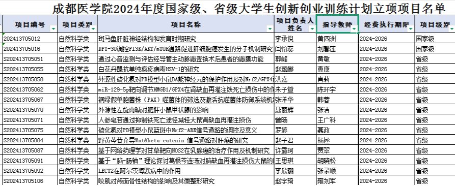 2025年度中心教师指导国家级、省级大学生创新创业训练计划项目
