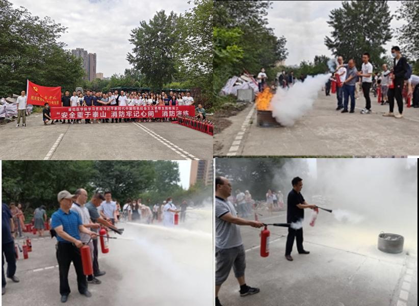 图9 2023年6月,基础医学院教工第三党支部与机关教工第五党支部开展“安全重于泰山,消防牢记心间”----应急消防演练“支部共建”活动。