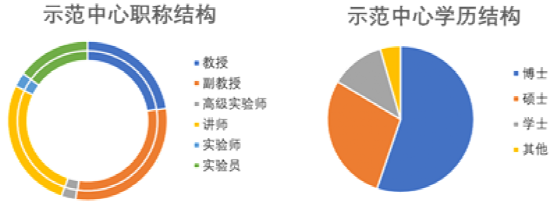 “中心”专职人员22人,兼职46人,共67人,其中博士37人,高级职称37人(图2);博士生导师5人,硕士生导师13人,留学归国专家11人,中国生理学会理事1人,中国病理生理学会机能学教学专委会委员1人,中国微生物学会医学微生物学与免疫学专委会委员2名、青委会副主任委员1名,四川省科技青年联合会副主席1名,四川省教学名师1人,四川省大学生创新创业优秀导师3人,四川省红十字会智库专家1人,四川省学术和技术带头人及后备人选9人,四川省卫健委及中医药管理局学术技术带头人及后备人选4人,四川省千人计划青年人才2人。